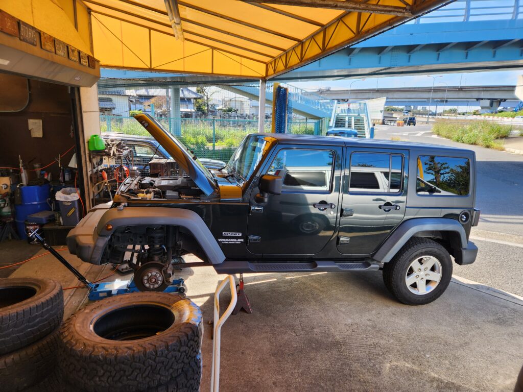 今日はJKラングラー、2012モデルの特別仕様車アルティテュードを仕上げています!もうボクもいい歳なのでおとなしく2インチリフトにホイルは純正18インチ、タイヤは新品のジオAT4を組んでみました!昔の様にハデハデなリフトアップカスタムはしてませんがこれはこれでいいんでないの~と思います^^